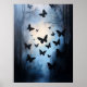 Dramatic Black Butterflies Blue Sky Abstract Art Poster