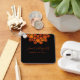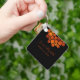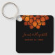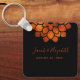 Dark and dramatic wedding keychain features a modern metallic copper aster flower with customisable text on black background.