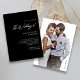 Make a statement with this dramatically elegant wedding invitation featuring white script on a luxurious black background.