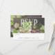 RSVP Enclosure Card featuring delicate florals on a dark wood background.