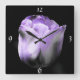 Dramatic Lavender Purple N Silver Tulip On Black Square Wall Clock