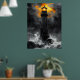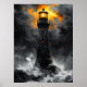 Dramatic Lighthouse Amidst Storm in Charcoal Style Poster