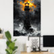 A dramatic artwork of a towering lighthouse amidst a stormy sea, with fiery skies illuminating the scene. This charcoal-inspired design captures resilience and power, perfect for nautical enthusiasts or striking coastal decor. A stunning tribute to maritime strength.