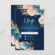 Dramatic Navy Blue and Blush Floral Boho Glitter RSVP Card