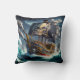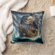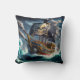 Dramatic Pirate Ship Battling Rough Seas at Dusk Cushion