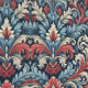 Vintage look bold red and blue damask peel and stick wallpaper