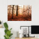Dramatic red foggy winter snowless forest poster