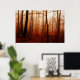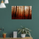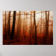 Dramatic red foggy winter snowless forest poster