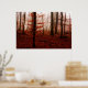 Dramatic red foggy winter snowless forest poster