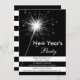 A festive white sparkler decorates this dramatic black and white striped New Year's Eve Party Invitation, that can easily be customised for a Christmas or Holiday Party.