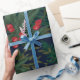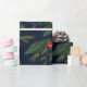 This holiday wrapping paper pattern features hand drawn wintery greenery in a layered, painterly style on a dark background to create a dramatic pattern.