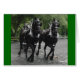 Two black Percherons in step as they pull a carriage.