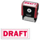 Draught self-inking rubber stamp with clear bold type in red for manuscript and reports that need to be clearly labelled as a draught.