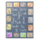 This fun spiral notebook will inspire you to draw, paint, sketch and doodle. Inspiring words in a fun font include Create, and Imagine. Other words are all about the tools artists use, such as ink, pen, pencil, charcoal and pastel. Antique studies of hands, feet, eyes and ears border the cover all the way around.