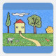 house,country,drawing,cartoon,illustration,infantile,babyish,naïve,cheep,rooster,path,way,flower,tree,bush,field,cloud,sky,blue,green,yellow