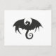 Drawing of a black dragon silhouette postcard