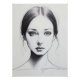 Black and white drawing of a girl's face. She has short hair and combed the skate in the middle.