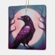 Drawing of a raven on grey blue background ceramic ornament