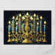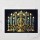 Drawing of Menorah Hanukkah Gold Blue Foil Holiday Card