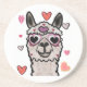 A cute throw pillow featuring a drawn llama with heart eyes and surrounded by assorted hearts. A great gift for Valentine's Day!