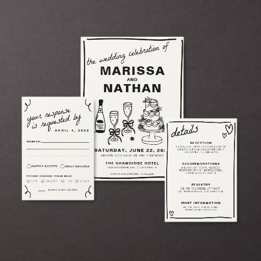 Add a playful and artistic touch to your wedding details with these Drawn Together wedding stickers! Featuring bold, hand-drawn illustrations with a fun and modern feel, these stickers are perfect for sealing envelopes, decorating favours, or adding a unique accent to your stationery. A trendy way to tie your wedding theme together with a touch of personality!