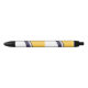 Pen with a design with the flag of South Bend, Indiana. A white, blue, and yellow flag with a red star