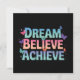 Nurture a brighter mindset with this uplifting "Dream, Believe, Achieve" greeting card featuring whimsical, colourful butterflies and motivational lettering. This cheerful artwork encourages mindfulness, self-love, and personal growth, making it a perfect gift or personal reminder to stay positive and spread good vibes. This butterfly-inspired design brings beauty and encouragement to everyday life.