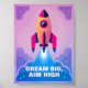 Inspire young minds with our "Dream Big, Aim High" poster, featuring a rocket launching into space. This vibrant and motivational wall art is perfect for children's nurseries, playrooms, or classrooms. The bold colors and uplifting message encourage kids to reach for the stars and believe in their dreams. A great addition to any space-themed decor or as a thoughtful gift for little adventurers ready to explore the universe of possibilities. Let this poster be a daily reminder to dream big and aim high!