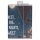The flask itself is fine. It’s a cheap flask, obviously bought in bulk, however am prepared to overlook that. Given that it is a personalized item, I would have liked to have seen gift boxing instead of the generic packaging. Terrible printing, and/or quality. It’s a cheap, tacky vinyl. It is not cut straight and is also applied in a way that it is overhanging the bottom, causing the glue to catch on items and it will eventually roll and tear, damaging the wrap.