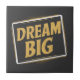 This design features a motivating slogan, "DREAM BIG", highlighted by a bold and imposing gold-colored typography. The background is black, creating a striking contrast that highlights the text. The font is modern with a slightly retro touch, evoking strength and ambition. The letters are framed by a rectangle with irregular edges that seems to be stamped, giving an impression of dynamism and authenticity. This design is for those who seek inspiration and encouragement to pursue their great dreams and goals, whether in their personal or professional life.