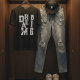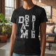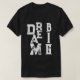 This Simple minimalist Typography text based design with white ink letters, featuring a cool modern inspiring saying and motivational quote Dream big, displayed in a cool aesthetic styleover a classic black t-shirt for men and women.
