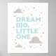 Searching for modern nursery art? Look no further! Splendid Supply Co.'s collection of fresh wall art is not only cute (but not cutesy!), but it can work in any style room. Our sweet "Dream Big, Little One" design will send your little man or little lady off to sleep with well wishes for tomorrow and every day after!