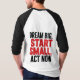 Embrace your dreams with our *"Dream Big, Start Small, Act Now"* t-shirt! This inspiring design serves as a daily reminder to take action on your goals, one step at a time. Available in multiple colours and styles, it's perfect for those ready to make a difference. Get yours and start your journey today!