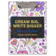Unleash your creativity with this vibrant and inspiring notebook. Featuring a bold floral design on a deep black background, this notebook showcases uplifting quotes like “Dream Big, Write Bigger,” “Ideas in Progress,” and “Create. Inspire. Repeat.” Perfect for writers, artists, students, and dreamers, it’s ideal for journaling, note-taking, brainstorming, or daily reflections. A beautiful reminder that every great idea starts on the page.