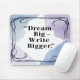 1. Elevate your workspace with the "Dream Big Write Bigger" mouse pad, designed to inspire creativity and ambition. Its vibrant design serves as a daily reminder to pursue your goals while providing a smooth surface for effortless navigation. Whether you're working on a project, studying, or simply browsing, this mouse pad enhances your productivity and adds a motivational touch to your desk.