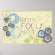 Whether a mantra for the creative spirit or a whispered prompt from your inner muse, these words carry the intent to inspire. Bright blue and purple flowers with swirling foilage frame this invitation to spark creative activity. Fully hand drawn and lettered design.