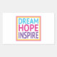 Elegant design in happy colours featuring the words of widsom: Dream, Hope and Inspire.