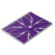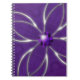 Against a abstract kaleidoscope background of soft apophysis fractals is a four-petaled flower of silver filigree, with a sparkling amethyst in the centre and small round gemstones in the corners. An illustration using purple as a symbol of royalty and wealth.