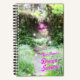 A fantasy forest as in a dream, in soft focus and stars, with several white wisps flying around. In the back is a threshold through an overgrown fallen tree. Above the portal is a glowing purple wisp sitting in the branches. Personalise this Dream Journal by adding your name!