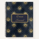 This dream journal has a dark blue background, and it is decorated with modern celestial-themed design with a combo sun and moon pattern.