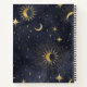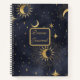 This dream journal has a dark blue background, and it is decorated with modern celestial-themed design with suns, moons and stars.