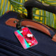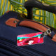 I was happy with the acrylic tag but it came with a thin leather strap to attach the tag to luggage (like a cat collar). I replaced the strap with a metal ring off of a key ring as the leather strap would come undone or break easily as luggage is sometimes handled without much care by airlines. Printing is great. Colours and positioning of the design I put on the tag were perfect. Very pleased.