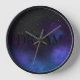 Wall clock with the word 'dream' in solid black capital letters set against a soft black starry night sky amid blue and purple nebula space clouds. Subtle, dark, and deep like the mysterious realm of dreams. Use the text template to add a name or inspiring short quote. ♡ Idyllfire
