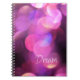 Write your innermost thoughts in this journal. "Dream" in white script. A cascade of purple sparkles background. Perfect for friend or loved one.