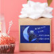 The quote from Edgar Allan Poe, "All that we see or seem is but a dream within a dream" is declared by the mystical owl sitting on a blue crescent moon on this sticker. Behind the owl and moon images is a dark blue abstract night sky filled with a swirl of silver and gold stars.