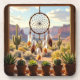 Western themed Coasters. Add a touch of the West to your office or workspace with this rustic window with with a dream catcher looking out over desert cacti, and a canyon. Potted cactus line the window sill.