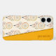 This boho phone case features shades of orange geometric background and matching multicolor native American dreamcatcher and feathers pattern. Personalise the template text field with a name or initials, remove the text or edit using the design tool to select a font style, size, and colour you like.