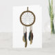 This design is off an interesting looking dreamcatcher. Catch your dreams and sleep easier. The dreamcatcher has some feathers hanging beneath it. This dreamcatcher design looks great on these greeting cards