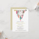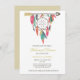 This is a colourful and whimsical western themed wedding rehearsal dinner invitation. It features a pretty feather and arrow dream catcher at the top, with your custom text in gold and grey below. Colours in the image include dusty pink, teal, brown and gold. The back of the invitation is matching antique gold. Be sure to see our matching wedding invitations and other wedding products in our store.