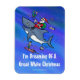 Santa isn't using the deer this year. Instead he's riding a friggin' GREAT WHITE SHARK! Check out this fun and colourful cartoon for some holiday fun. Featuring a strange and hilarious cartoon of Santa riding a shark with some little elf friends along on a dreamscape-like blue night sky background with falling snow. Of course it includes the caption "I'm Dreaming Of A Great White Christmas."